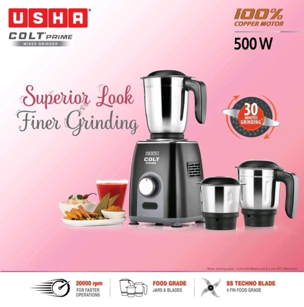 Usha Colt Prime Mixer Grinder 500 Watt (Black)
